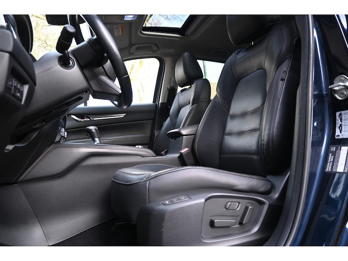 Keurige donkerblauwe Mazda CX-5 afkomstig van 2e eigenaar. Zeer complete auto met luxe uitrusting. In Chique metallic kleur met fraaie 19 inch velgen en chique zwart lederen interieur met memory functie, Schuifdak en stoelverwarming. Altijd jaarlijks goed onderhouden door de dealer. Comfortabele 4-Wheel Drive SUV met sterke 2.5 benzinemotor en automatische versnellingsbak en een maximaal geremd trekgewicht van maarliefst 2.000kg.