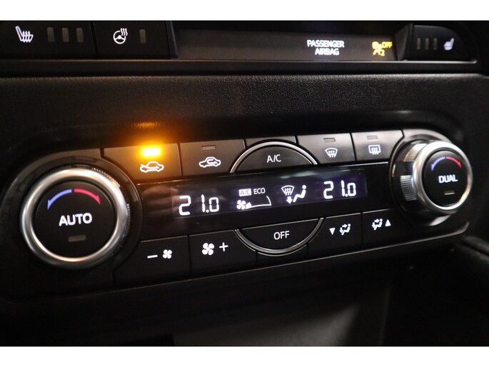 In de Mazda CX-5 heeft uw veiligheid en die van uw omgeving prioriteit. Verkeersbord-detectie herkent verkeersborden en toont deze op het instrumentarium van de auto. Het Lane-keeping systeem zorgt voor een automatisch constante positie binnen de rijstrook. Afdwalen is uitgesloten. Voor meer veiligheid detecteert deze auto het risico van een aanrijding tijdig via de forward collision warning. Dankzij veiligheidsvoorzieningen als head-up display, dodehoekdetectie, hill hold functie, vermoeidheidsherkenning, autonoom remsysteem en bandenspanningcontrolesysteem, bent u steeds veilig onderweg.