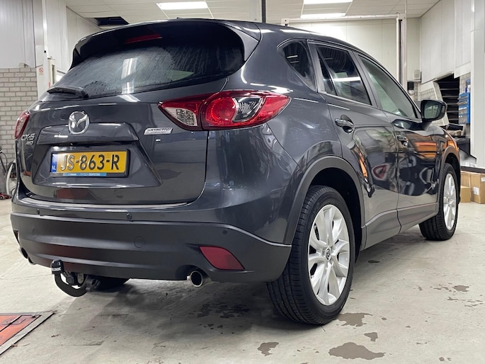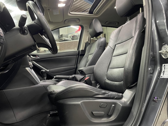 Zeer complete Mazda CX-5 2.0 AWD van 2013 in gewilde GT-M uitvoering en aantrekkelijke km-stand van 141.500 km. Zowel van binnen als van buiten in verzorgde staat en jaarlijks goed onderhouden. In chique donkergrijs metallic kleur met zwart lederen interieur en sportieve 19 inch wielen.