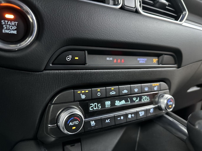 De Mazda CX-5 is uw trouwe partner onderweg, want hij houdt continu voor u de situatie op en om de weg in de gaten. Volautomatische veiligheidssystemen kunnen daarbij ingrijpen om u voor gevaarlijke situaties te behoeden. Rijden met het overzicht van een straaljagerpiloot? De praktische en veilige head-up display projecteert dashboardinfo binnen uw gezichtsveld, zodat u uw blik nooit hoeft te verplaatsen. Oog op de weg! Onderweg fungeert de verkeersbord-detectie als het ware als uw bijrijder en attendeert u op de verkeersborden langs de weg. Met het Lane-keeping systeem gaat u nooit onbedoeld over de streep. In deze Mazda vinden we verder een dodehoekdetectie, forward collision warning system, hill hold functie, brake assist, vermoeidheidsherkenning en bandenspanningcontrolesysteem.