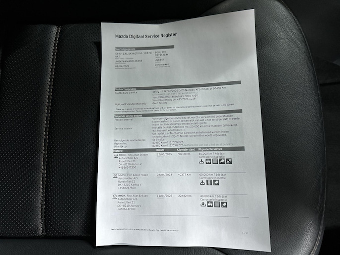 Met deze Mazda CX-5 kunt u weer jaren vooruit, de kilometerteller staat op 69537. De aandrijving komt voor rekening van een benzinemotor en een automatische transmissie. Leren bekleding versterkt de topklasse uitstraling van het interieur. De achterbankverwarming, het verwarmbare stuurwiel en de verwarmbare voorstoelen brengen passagiers en bestuurder snel weer op temperatuur, ongeacht hoe koud het buiten is. Het elektrisch bediende panoramadak zorgt voor maximale lichtinval en frisse lucht in het interieur. De elektrische achterklep opent met een druk op de knop, zodat u gemakkelijk toegang heeft tot de bagageruimte. Verder is de Mazda uitgerust met: 19 inch lichtmetalen velgen, LED koplampen, dakspoiler, extra getint glas, in delen neerklapbare achterbank en LED-achterlichten.