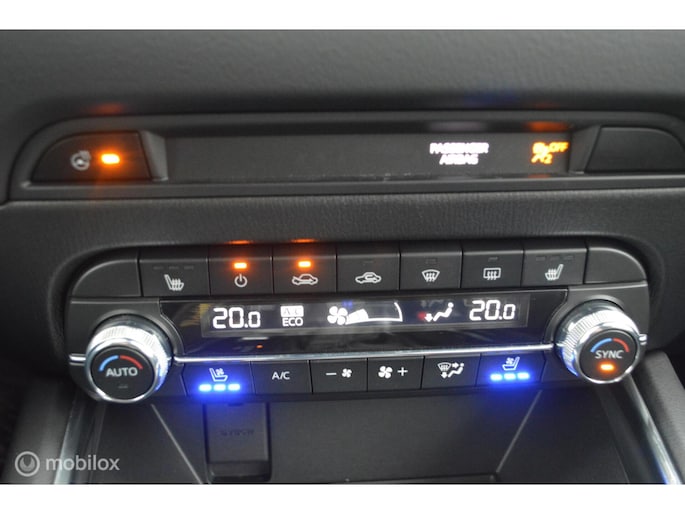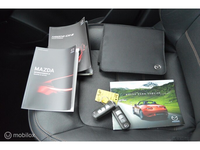 Zoals u mag verwachten van deze Mazda CX-5 is hij uitgerust met een reeks aan actieve veiligheidssystemen. Een belangrijke bijdrage aan de veiligheid onderweg levert de verkeersbord-detectie in deze Mazda. Het Lane-keeping systeem garandeert dat u zich niet onverhoeds buiten de lijnen van de rijstrook begeeft. Forward collision warning waarschuwt bij een dreigende aanrijding met een voorligger. U bent mede dankzij head-up display, dodehoekdetectie, hill hold functie, brake assist, vermoeidheidsherkenning en bandenspanningcontrolesysteem steeds veilig onderweg.