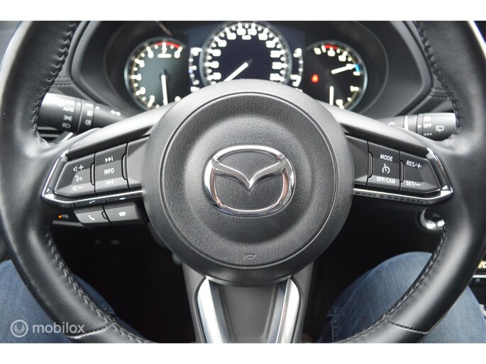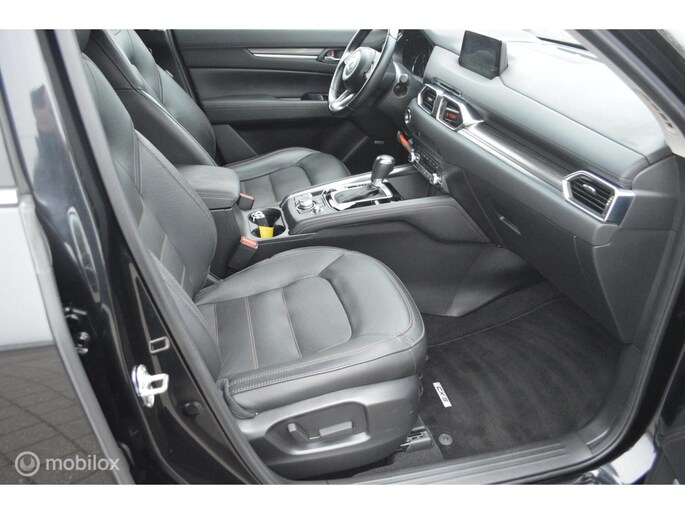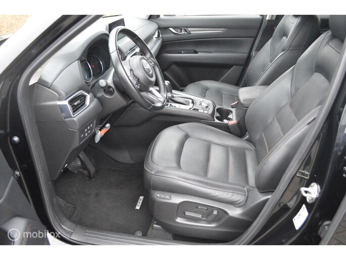 Alle technologie in de Mazda CX-5 is er op gericht om uw rit veilig en gemakkelijk te laten verlopen. Dit mooie exemplaar komt uit 2019. Met zijn benzinemotor en automatische transmissie is dit een prima auto voor nog vele kilometers. Een blik van dichtbij onthult meteen twee mooie pluspunten: het lederen interieur en de elektrisch bedienbare achterklep. Winters instappen is er niet meer bij dankzij de stoelverwarming. Afzien is er bij deze Mazda CX-5 niet bij. Zelfs achterin vinden we de verwarmde achterbank. Ook is de auto voorzien van: 19 inch lichtmetalen velgen, LED koplampen, dakspoiler, donker getint glas achter, in delen neerklapbare achterbank en LED-achterlichten.