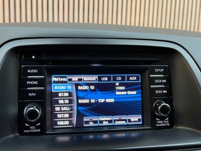 Ontspannen en zorgeloos autorijden, dat doet u met deze Mazda CX-5. De uitstekende prestaties van deze auto komen van de viercilinder motor en de automatische transmissie. Van binnen is deze Mazda CX-5 mooi uitgevoerd met een classy lederen interieur. De verwarmbare voorstoelen zijn een heerlijke extra optie, waarmee u uzelf en uw bijrijder een groot plezier doet. Xenonverlichting zorgt voor een krachtige en heldere lichtbundel. Tot de uitrusting behoren ook extra getint glas en verstelbare lendensteunen.