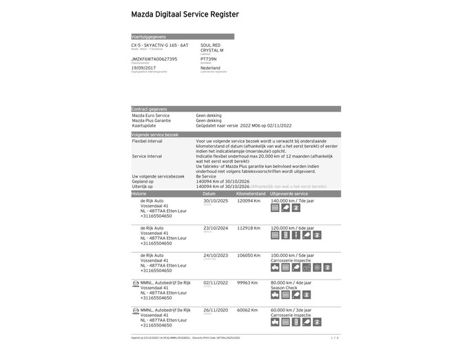 Kilometerstand gecontroleerd