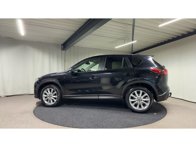 Uw nieuwe auto staat klaar voor vertrek. Stap gerust in, deze Mazda CX-5 heeft 107512 kilometer gelopen. Hij heeft een benzinemotor en een automatische transmissie. Het lederen interieur maakt het echt af. Behaaglijk onderweg zijn? Als bestuurder geniet u van de verwarmbare voorstoelen. Net als uw bijrijder! Dankzij de xenonverlichting profiteert u in het donker van een krachtige en heldere lichtbundel. Bij de zeer complete uitrusting van deze auto behoren ook 19 inch lichtmetalen velgen, extra getint glas en verstelbare lendensteunen.