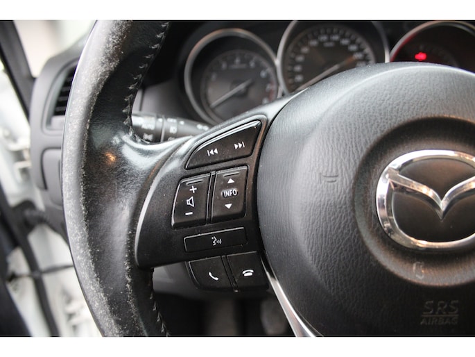 De auto is voorzien van een trekhaak en is een uitstekende caravantrekker. Naast de routeinformatie van het navigatiesysteem kunt u muziek via het audiosysteem ook online beluisteren via bluetooth. Dankzij automatische airconditioning is het interieur behaaglijk warm of verfrissend koel. Parkeersensoren helpen u tijdens het in- en uitparkeren. Om de veiligheid onderweg te verhogen, heeft deze Mazda zowel een automatisch inschakelbare verlichting als een regensensor aan boord, zodat hij zelf de verlichting en de ruitenwissers kan inschakelen. Extra opties op deze auto zijn: cruise control, automatisch dimmende binnenspiegel, lederen stuur, isofix-aansluiting, centrale deurvergrendeling met afstandsbediening en bagage afdekhoes.