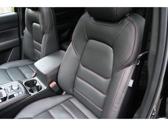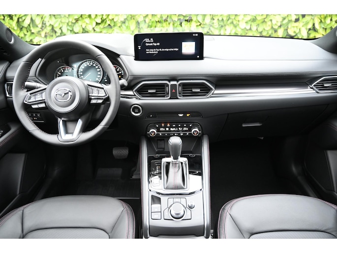 Hecht je waarde aan sportiviteit? Kies dan voor de Mazda CX-5 Homura met een eigen, krachtige ’look and feel‘ dankzij de zwarte velgen en zwarte spiegelkappen. In het interieur komt de sportieve flair tot uiting in de stoelbekleding en het rode stikwerk voor allerlei interieurdelen, zoals op het dashboard, het stuurwiel en de deurpanelen.
