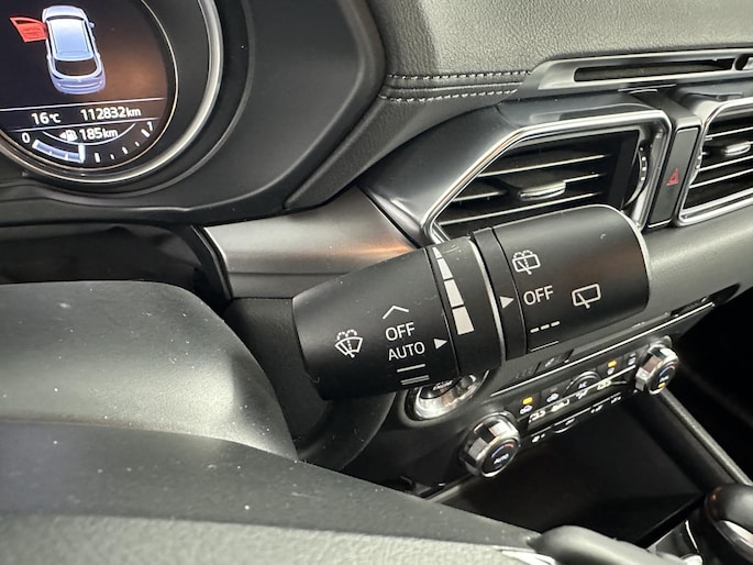 U rijdt gemakkelijk, comfortabel en zonder zorgen met deze Mazda CX-5. De aandrijving van deze Mazda wordt verzorgd door een viercilinder benzinemotor en een automatische transmissie. Koude start? Niet met de verwarmbare voorstoelen! Bij deze Mazda CX-5 is aan alles gedacht, tot en met een verwarmd stuurwiel aan toe. De uitmonstering van deze auto wordt gecompleteerd door onder meer 19 inch lichtmetalen velgen, LED koplampen, dakspoiler, extra getint glas, in delen neerklapbare achterbank en LED-achterlichten.