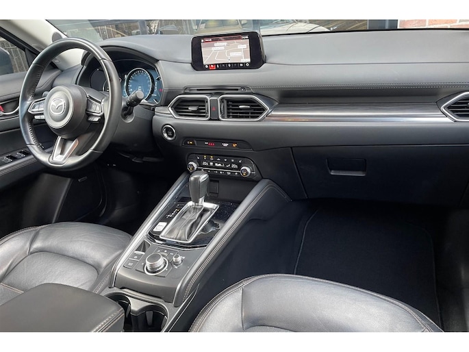 Zeer compleet uitgevoerde Mazda CX-5 2.5 Automaat met maarliefst 194 PK. Afkomstig van 2e eigenaar en volledig jaarlijks onderhouden t/m 2025. In schitterende Machine Grey kleur met zwart lederen interieur met geheugenfunctie en stoelkoeling.