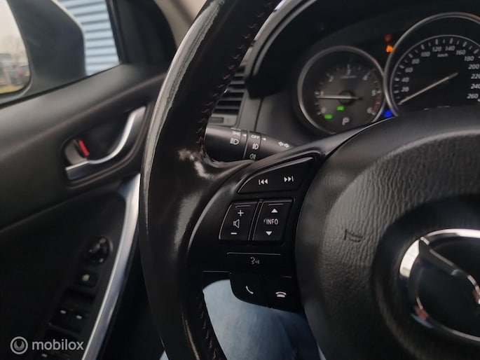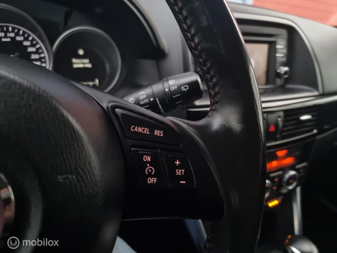 Wat een gemak, die achteruitrijcamera. Alles in beeld zonder capriolen. Als u regelmatig met een aanhanger of een fietsendrager op pad bent, is de afneembare trekhaak een praktische extra. Muziek luisteren onderweg was nog nooit zo'n genoegen! Het high performance Bose audiosysteem levert een fijne geluidservaring. Het comfort wordt verhoogd door de aanwezige electronic climate control. Natuurlijk is een complete auto als deze ook voorzien van sensoren die de omgeving in de gaten houden. Deze Mazda heeft niet alleen een automatisch inschakelbare verlichting aan boord, maar ook een regensensor. Ook full map navigatiesysteem, cruise control, keyless entry, automatisch dimmende binnenspiegel, lederen stuur en isofix-aansluiting horen tot de voorzieningen op deze auto.
