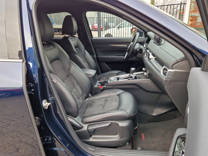 Het interieur van deze Mazda CX-5 is uitgerust met kunstlederen/microvezel bekleding, wat niet alleen comfortabel is maar ook nog eens eenvoudig te onderhouden. Het volledig digitale instrumentenpaneel geeft je alle benodigde informatie in één oogopslag, terwijl de full-LED koplampen zorgen voor een optimale verlichting van de weg, ook op donkere avonden.