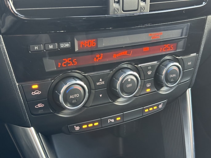 De lichtmetalen velgen van 17" geven de Mazda CX-5 een stoere en sportieve look. Daarnaast is het stuur multifunctioneel, waardoor u eenvoudig toegang heeft tot verschillende functies zonder uw handen van het stuur te hoeven halen. Dankzij de automatische dimlichten heeft u altijd het juiste licht op de weg, zonder zelf constant te hoeven schakelen.