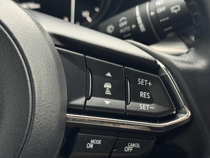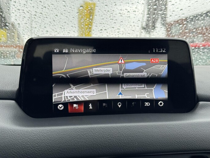 De functie van de 360 graden camera in deze auto is om u een totaaloverzicht van de omgeving te geven, ongeacht hoe smal de straat of parkeerplek is. Adaptive cruise control houdt de ingestelde snelheid vast en houdt afstand tot het voertuig voor u. De auto is voorzien van een trekhaak en is een uitstekende caravantrekker. Muziek luisteren wordt genieten met het high performance audiosysteem. De achteropkomend verkeer waarschuwing is een mooie veiligheidsoptie, die middels sensoren in de gaten houdt wat er onderweg achter u gebeurt. Met dashboard met spraakbediening, full map navigatiesysteem, electronic climate control, DAB ontvangst, regensensor en keyless entry is deze Mazda helemaal compleet.