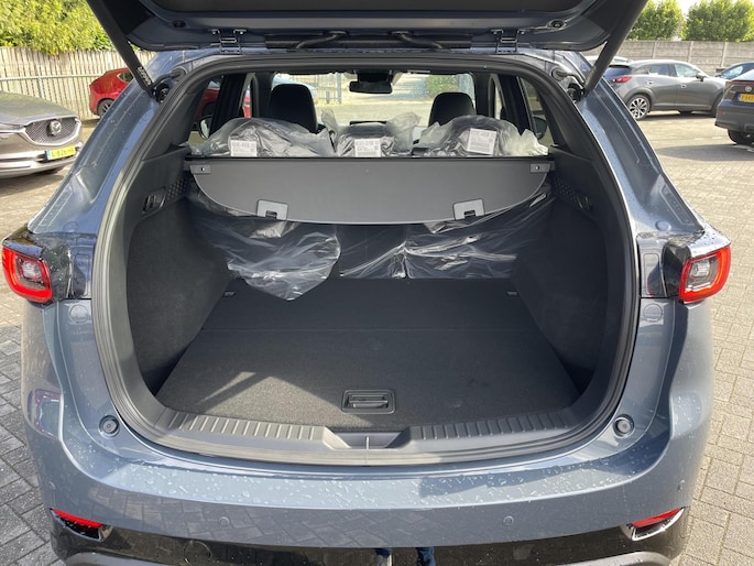 De Mazda CX-5 is een goed voorbeeld van Japanse bouwkwaliteit. De krachtige motor geeft deze Mazda uitstekende prestaties. De stijlvolle, luxe uitstraling is inbegrepen in de vorm van leren bekleding. Voorzien van zowel stoelverwarming, verwarmbare achterbank alsook een verwarmbaar stuur, zorgt dit voertuig voor uitstekend comfort tijdens koude dagen. De elektrisch bedienbare achterklep opent met een druk op de knop. In deze auto profiteert u onder andere ook van: 19 inch lichtmetalen velgen, LED koplampen, dakspoiler, elektrisch inklapbare buitenspiegels, extra getint glas en in delen neerklapbare achterbank.
