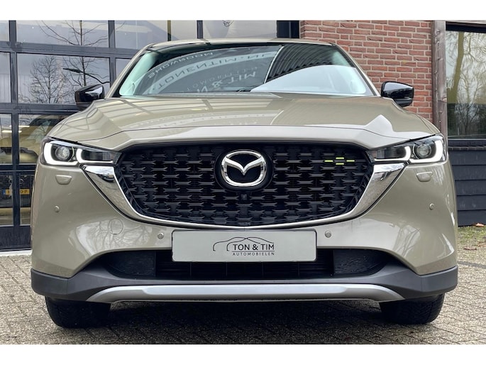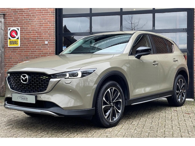 Zeer complete Mazda CX-5 2.5 Automaat van 2-2023! In NEWGROUND uitvoering met zeer complete optielijst. Volledig Mazda Dealer onderhouden. In fraaie kleur Zircon Sand met leder/alcantara interieur en chique 19 inch sportwielen.