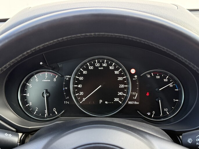 Voor een goed en duidelijk overzicht onderweg is het digitale dashboard uitermate slim ingedeeld. Met de 360 graden camera kunt u elk obstakel of gevaar rondom de auto detecteren, wat uw veiligheid verhoogt. Adaptive cruise control houdt de ingestelde snelheid vast en houdt afstand tot het voertuig voor u. Dankzij de spraaksturing bedient u verschillende functies zonder uw handen van het stuur te halen. Deze Mazda CX-5 maakt het u makkelijk. Vandaar ook de elektrisch inklapbare trekhaak. Extra opties op deze auto zijn: Bose-audioinstallatie, full map navigatiesysteem, achteropkomend verkeer waarschuwing, electronic climate control, DAB ontvangst en regensensor.