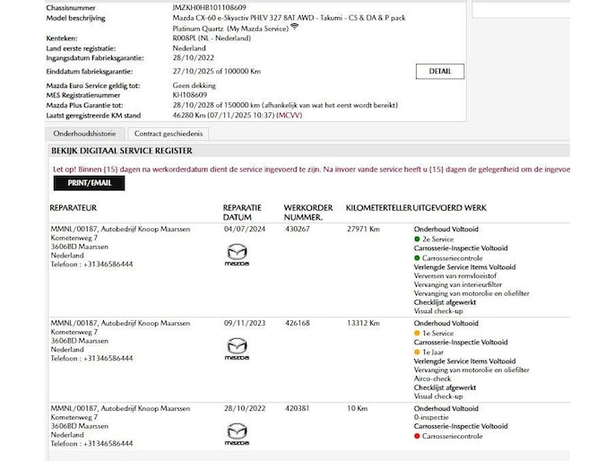 Kilometerstand gecontroleerd