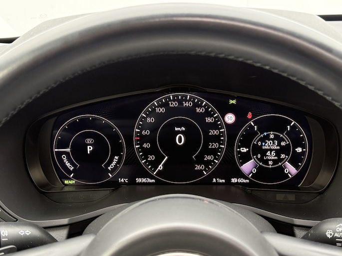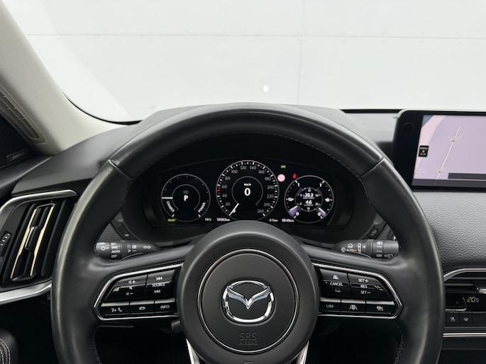 Met de nieuwste technologieën aan boord is deze Mazda in staat om zelf te reageren op potentieel gevaarlijke situaties op de weg. Da's veilig! Alle informatie geprojecteerd op de voorruit via head-up display, zodat u uw ogen op de weg kunt houden! De actuele snelheidslimiet, een inhaalverbod en andere verkeersborden. De verkeersborddetectie ondersteunt u tijdens elke rit. Deze Mazda CX-60 is ook behulpzaam als het gaat om een rechte koers. Het Lane-keeping systeem signaleert en corrigeert als u onbedoeld de rijstrooklijnen dreigt te overschrijden. Met voorzieningen als dodehoekdetector detectiesysteem, forward collision warning system, hill hold functie, brake assist, vermoeidheidsherkenning en bandenspanningcontrolesysteem, bent u altijd veilig onderweg.