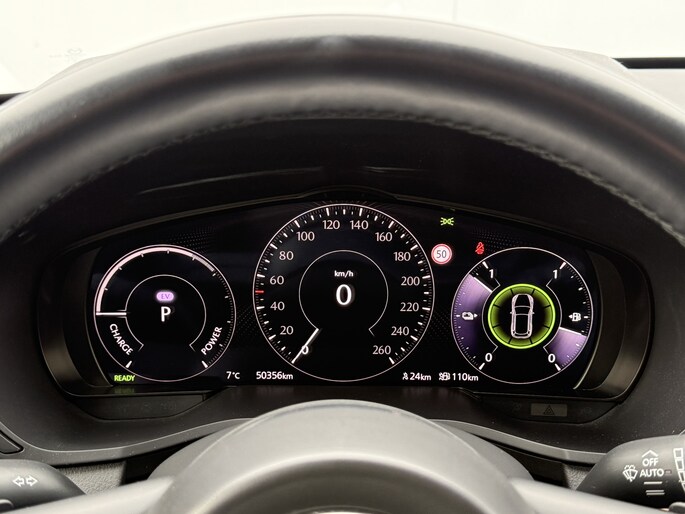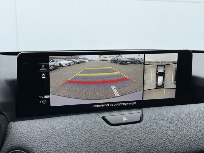 Alle functies voor een veilige en zuinige rit worden overzichtelijk weergegeven op het digitale dashboard. De functie van deze 360 graden camera is vooral nuttig in smalle straatjes waar het zicht beperkt is. Adaptive cruise control is een comfortabele en veilige optie. Het systeem reguleert de snelheid en houdt automatisch afstand tot uw voorligger. Bedient u de auto liever met uw stem? Dan is het goed om te weten dat spraakbediening aanwezig is. Connected Services zorgen ervoor dat de belangrijkste functies en data van de auto altijd en overal te checken zijn. Gewoon via de app op de smartphone. De Mazda is standaard voorzien van: Bose-audioinstallatie, full map navigatiesysteem, kruisend verkeer detectie, electronic climate control, schakelpaddles aan het stuur en draadloos opladen.