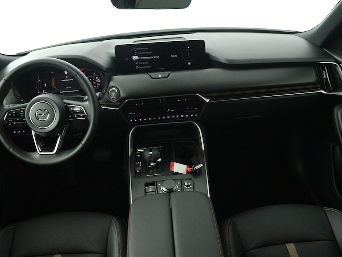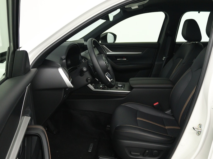 Alle technologie in de Mazda CX-80 is er op gericht om jouw rit veilig en gemakkelijk te laten verlopen. Dit is een nieuwe auto, hij is nu direct leverbaar. De krachtige benzinemotor van deze auto is gekoppeld aan een automatische transmissie. Deze Mazda CX-80 is luxe afgewerkt. Kijk maar naar het lederen interieur! Ervaar de weldadige warmte van de inschakelbare stoelverwarming. Ook achterin is iedereen snel op temperatuur door de verwarmde achterbank. Ook 20 inch lichtmetalen velgen, LED koplampen, dakspoiler, in delen neerklapbare achterbank, LED-achterlichten en verstelbare lendensteunen horen tot de voorzieningen op deze auto.