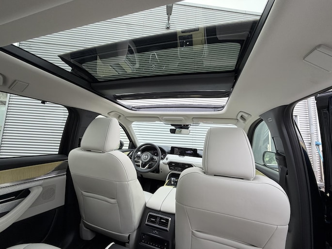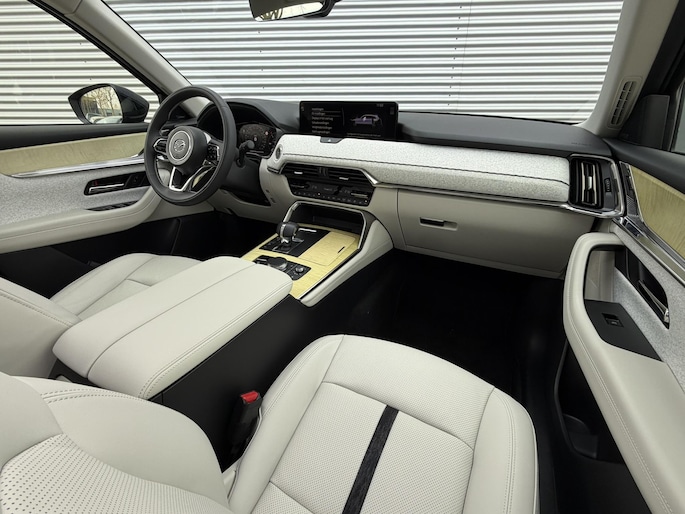 Innovatief design, doordachte techniek en een hoog kwaliteitsniveau zijn typische kenmerken van de Japanse automerken. Deze Mazda CX-80 heeft een hybride motor, dus een combi van brandstof en elektrisch. Een slim en milieuvriendelijk systeem dat ook nog eens lekker kostenbesparend is. Met zijn lederen bekleding is deze Mazda comfortabel en stijlvol. Hoe koud het buiten ook is, het verwarmbare stuurwiel en de verwarmbare voorstoelen brengen uw handen, vingers en lichaam snel weer op temperatuur. De comfortstoelen zorgen voor een optimale zithouding onderweg. Qua licht en ruimtelijk gevoel zit het helemaal goed met het elektrisch bediende panoramadak. Een praktische extra is de elektrisch bedienbare achterklep die opent en sluit met een druk op de knop. In deze auto profiteert u onder andere ook van: LED koplampen, trailer assistent, dakspoiler, extra getint glas, in delen neerklapbare achterbank en LED-achterlichten.
