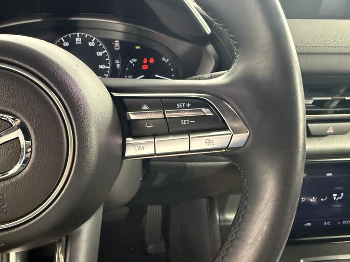 Achteruitrijden en inparkeren worden een eitje dankzij de achteruitrijcamera. Met adaptive cruise control houdt de auto zelfstandig afstand tot uw voorligger. Een veiligheidsverhogende optie waarmee u comfortabel onderweg bent. U weet altijd hoe de auto eraan toe is dankzij Connected Services. Ook handig voor de garage en de wegenwacht. Even de app uitlezen en klaar! Deze auto kent elke bestemming als z'n broekzak, dankzij het navigatiesysteem. Deze Mazda MX-30 denkt vooruit als u van plan bent af te slaan. De kruisend verkeer detectie calculeert en analyseert het tegemoetkomende verkeer en waarschuwt als het risico op aanrijding bestaat. En dan is deze auto ook nog eens voorzien van electronic climate control, DAB ontvangst, regensensor, automatisch dimmende binnenspiegel, lederen stuur en versnellingspook en centrale deurvergrendeling met afstandsbediening.