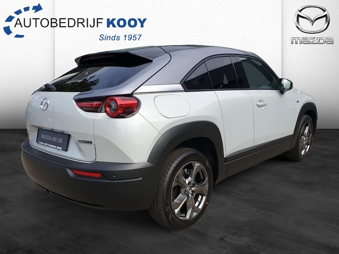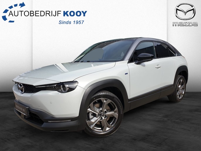 Bij Autobedrijf Kooy Spijkenisse B.V. hebben we nu een speciale actie voor de Mazda MX-30 EV145 Makoto Premium. Deze prachtige elektrische SUV in de kleur wit met metallic lak is een echte eyecatcher op de weg. Met zijn 146 PK vermogen en slechts 6000 kilometer op de teller, kun je met deze auto genieten van zowel kracht als efficiency.