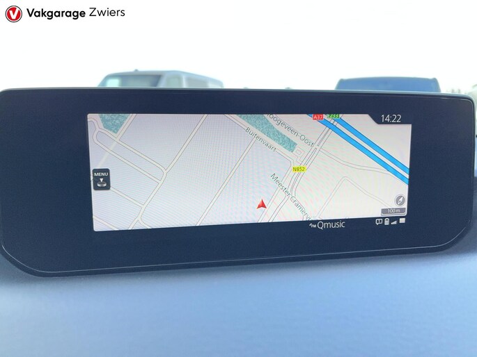 Geen nekkramp of spiegelwerk meer bij het achteruitrijden: de achteruitrijcamera kijkt en ziet alles! Als u de adaptive cruise control inschakelt, regelt de auto zelf de snelheid en de afstand tot de auto voor u. De jeugd is niet los te maken van hun smartphone, en dat zie je ook aan deze jonge auto. Via een speciale app staat u overal en altijd in contact met uw vierwieler. Superhandig! De bediening van het audio-installatiesysteem en het navigatiesysteem gebeurt met knoppen op het stuur. De audio is overigens voorzien van DAB-radio voor een altijd heldere ontvangst. Deze Mazda MX-30 denkt vooruit als u van plan bent af te slaan. De kruisend verkeer detectie calculeert en analyseert het tegemoetkomende verkeer en waarschuwt als het risico op aanrijding bestaat. U bent in deze Mazda ook voorzien van electronic climate control, regensensor, automatisch dimmende binnenspiegel, isofix-aansluiting, centrale deurvergrendeling met afstandsbediening en verstelbaar stuur.