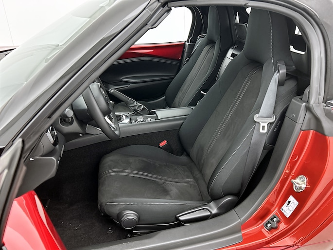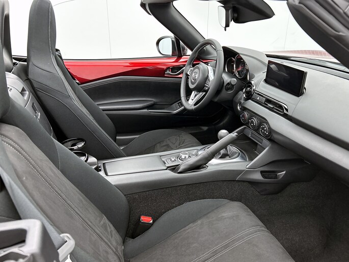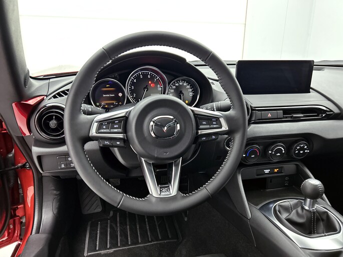 De Mazda MX-5 is jouw trouwe partner onderweg, want hij houdt continu voor jou de situatie op en om de weg in de gaten. Volautomatische veiligheidssystemen kunnen daarbij ingrijpen om je voor gevaarlijke situaties te behoeden. Dat de auto steeds meer taken van de bestuurder overneemt, merk je bijvoorbeeld aan het systeem voor verkeersbord-detectie in deze auto. Deze Mazda MX-5 is ook behulpzaam als het gaat om een rechte koers. Het Lane-keeping systeem signaleert en corrigeert als je onbedoeld de rijstrooklijnen dreigt te overschrijden. Ook is deze auto uitgerust met een systeem dat je waarschuwt wanneer je achter het stuur in slaap dreigt te vallen. Dankzij veiligheidsvoorzieningen als autonoom remsysteem en bandenspanningcontrolesysteem, ben je steeds veilig onderweg.