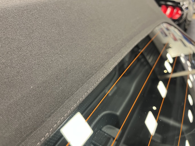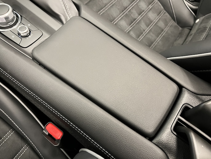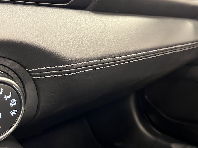 • Dashboard-elementen, middenconsole en deurpanelen in zwart kunstleder, afgewerkt met grijs stiksel