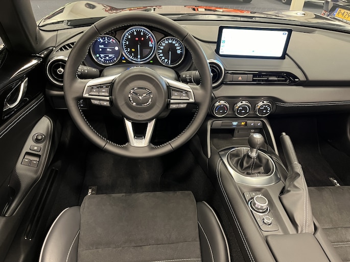 Historie: De hier aangeboden Mazda MX-5 ND 2.0 SkyActiv-G 184PK Homura hebben wij met 677km op de teller overgenomen van een Nederlandse Mazda dealer die de auto in juni 2024 op kenteken heeft gezet. Wij hebben hem vervolgens verkocht aan de eerste particuliere eigenaar die hem nu weer heeft ingeruild op een nieuwe Mazda MX-5. Met nog maar 4575km op de teller is deze auto nog zo goed als nieuw!