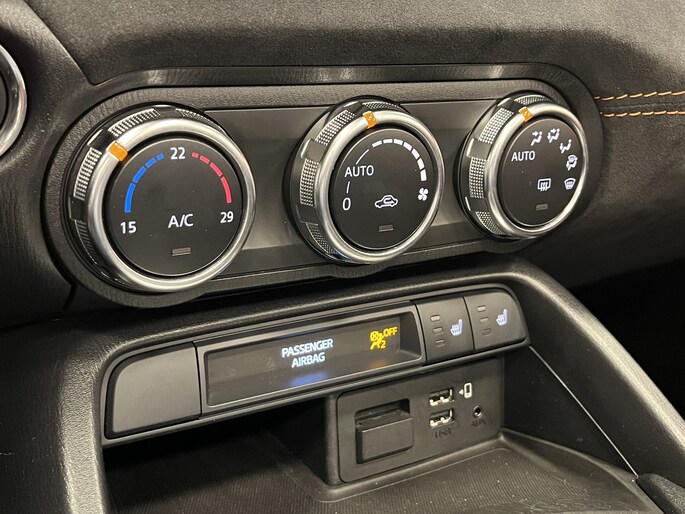 Verder nog voorzien van: Parkeersensoren achter, Lane Departure Warning (LDW): waarschuwing bij onbedoeld verlaten van de rijbaan, climate control, automatische airconditioning, licht- en regensensor, automatisch dimmende binnenspiegel, stoelverwarming met drie standen, DAB+: Digital Radio+ ontvanger (incl. FM/AM), LED-dagrijverlichting, buitenspiegels en voorruitomlijsting in pianozwart gespoten, lederen stuurwiel, handremgreep en versnellingspook, limited sperdifferentieel, softtop van stof met verwarmbare achterruit, Start-/stopknop met wegrijbeveiliging, i-STOP technologie start- /stopsysteem, i-ELOOP regeneratief remsysteem, en een strut tower bar (verstevigingsbalk op de voorste veerpoten).