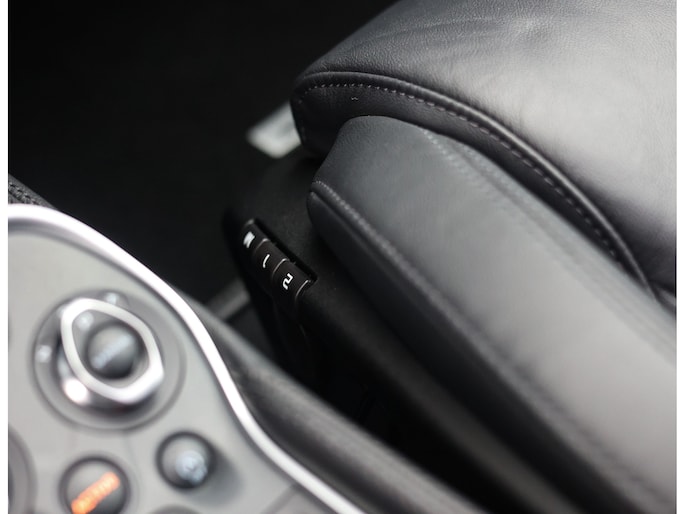 In het interieur vinden we zwart leder op vrijwel ieder oppervlak. Zo zijn de sportstoelen, het dashboard, middenconsole en binnenhemel bekleed met Carbon Black leder en afgewerkt met Carbon Black stiksels. Voor een extra ruimtelijk gevoel is er een panoramadak aanwezig.