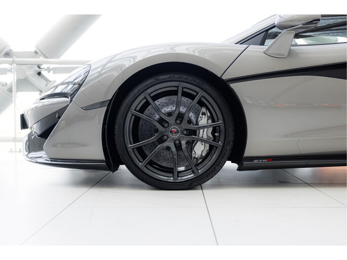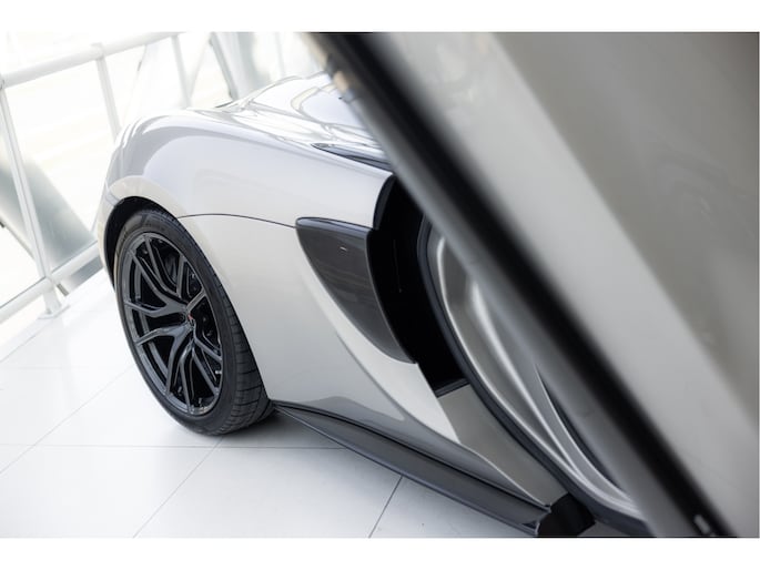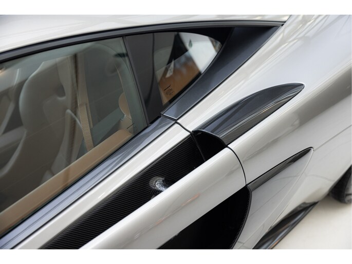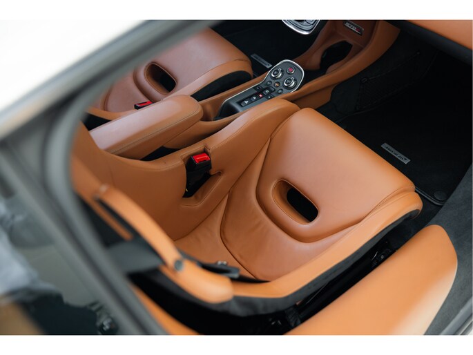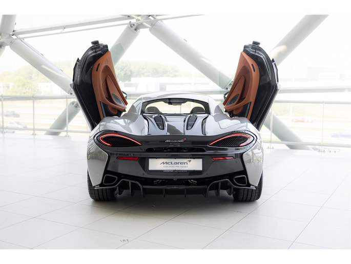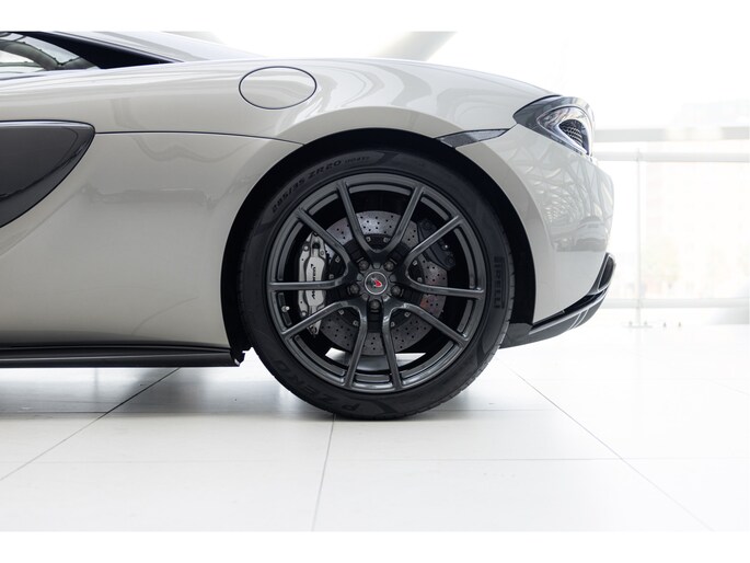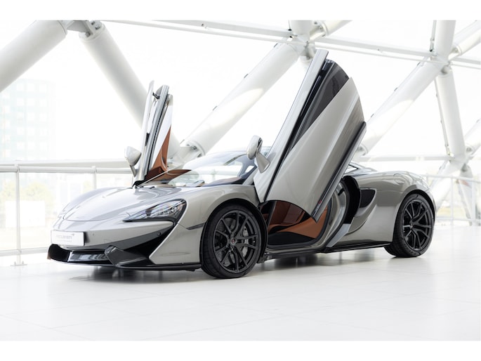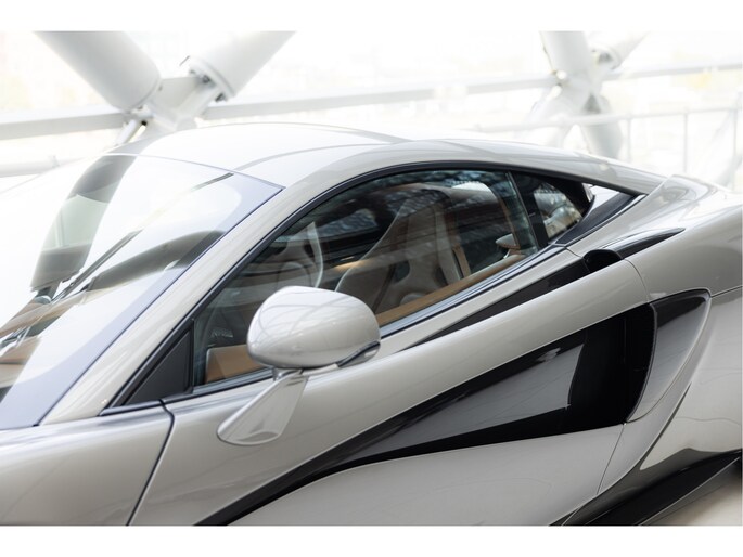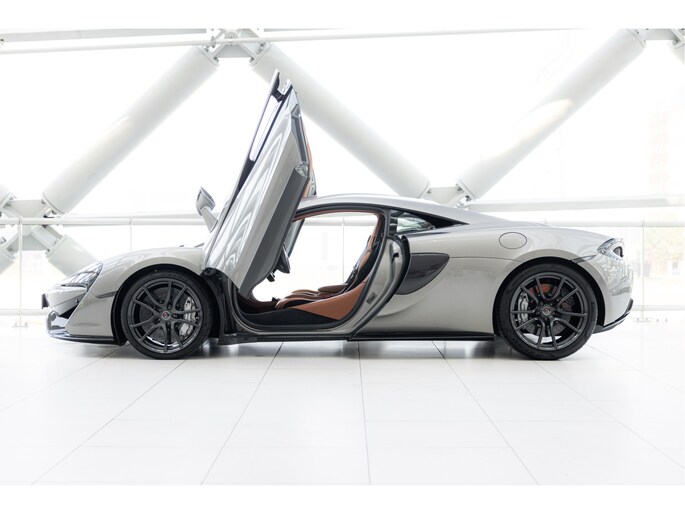 Blade Silver is een exclusieve kleur die beschikbaar was voor de 570S. Deze metallic champagne zilveren tint geeft de auto een verfijnde uitstraling en is gecombineerd met een saddle tan lederen interieur.