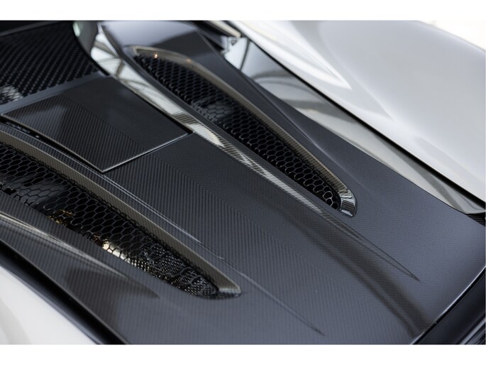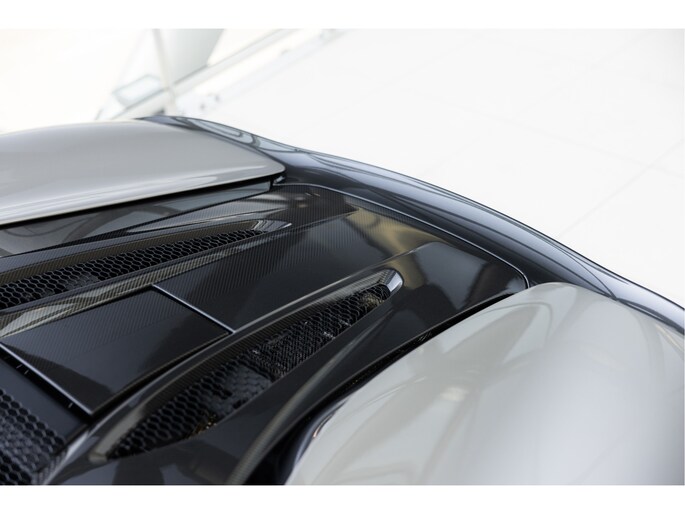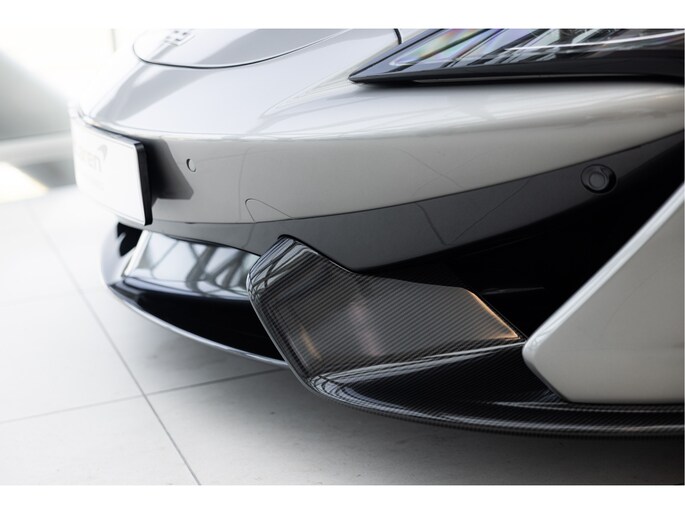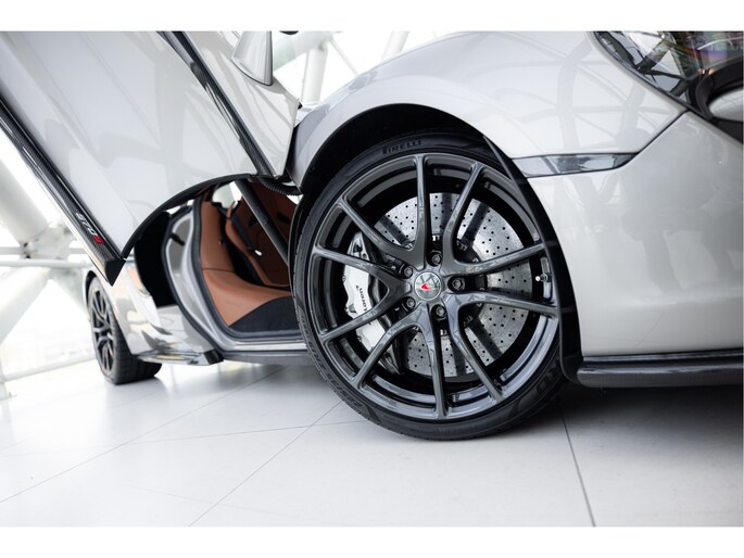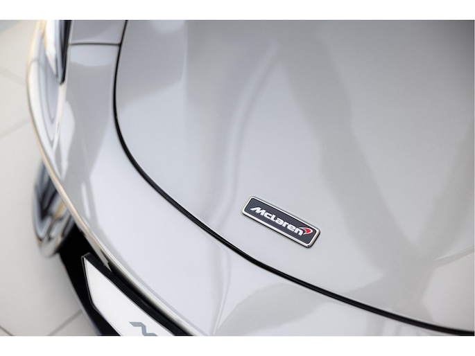 Het chassis is opgebouwd uit McLaren’s Carbon Monocell II, een lichtgewicht en stijve structuur die bijdraagt aan de uitstekende rijeigenschappen. De Blade Silver kleur benadrukt de aerodynamische lijnen van de auto, met contrasterende koolstofvezel accenten op de achtervleugel, zijskirts en diffuser.