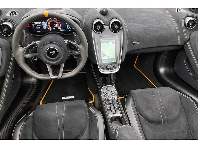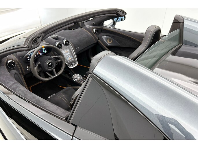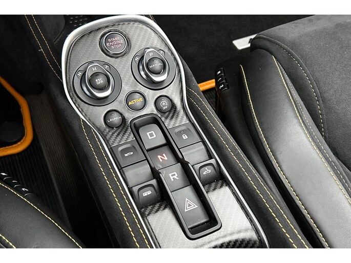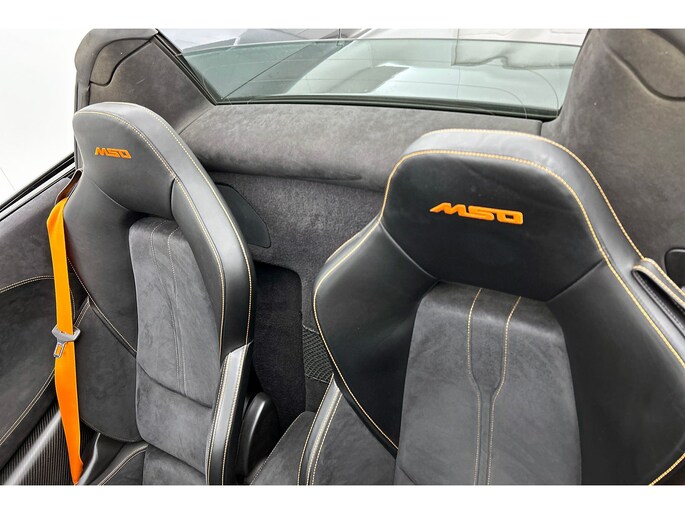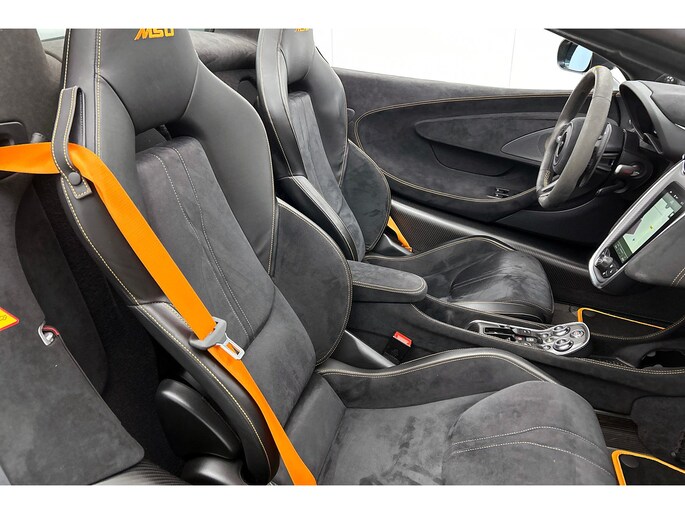 Zodra de zon zich laat zien, kunt u heerlijk genieten achter het stuur van deze cabriolet. Het is een nette en comfortabele auto, deze McLaren 600LT Spider. Hij heeft 34443 kilometer gelopen, de onderhoudsgeschiedenis is bekend. De aandrijving komt voor rekening van een benzinemotor en een automatische transmissie. Neem plaats op de comfortabele stoelen. Dankzij de elektrische bediening en het geheugen is het eenvoudig om hierin de beste zitpositie te vinden. Met het elektrisch bedienbare cabriodak geniet u in een oogwenk van de buitenlucht. Tot de uitrusting van deze McLaren behoren ook 20 inch lichtmetalen velgen, LED koplampen, adaptief dempingsysteem en LED-achterlichten.