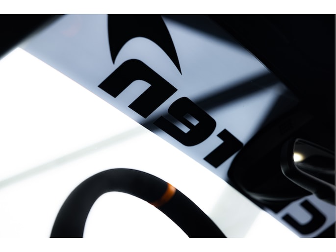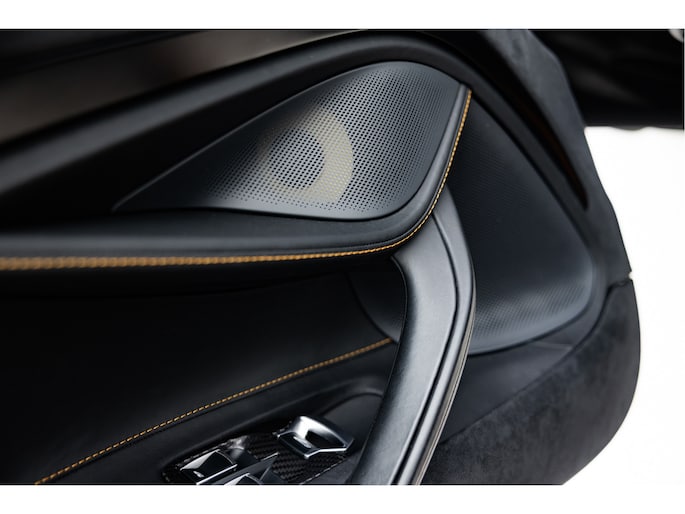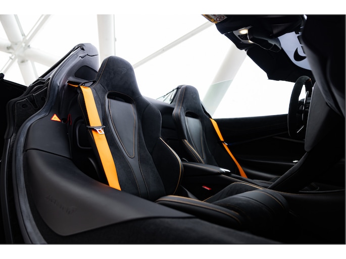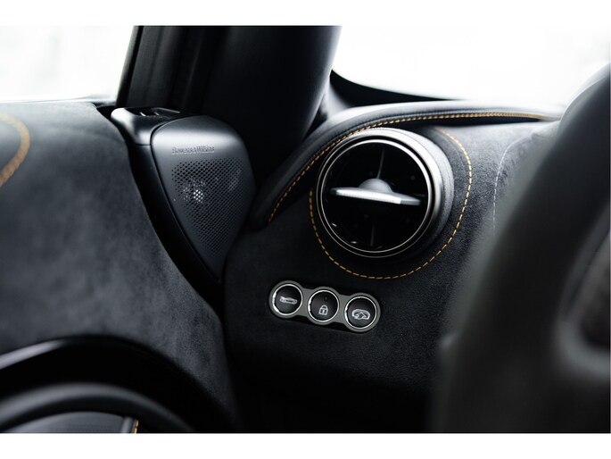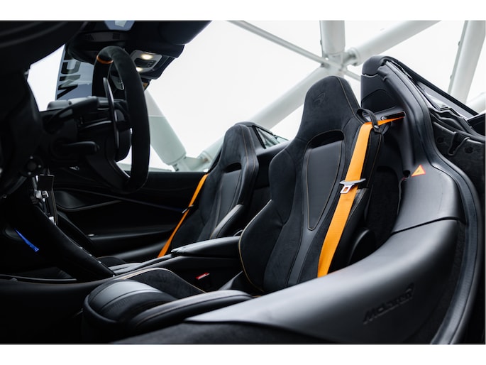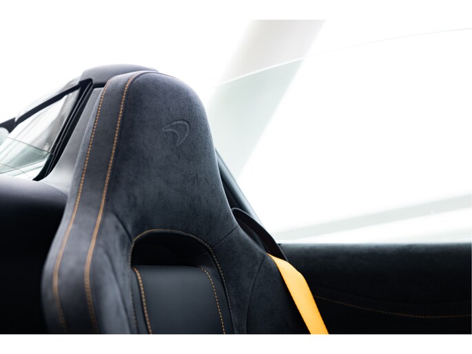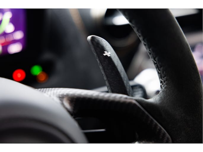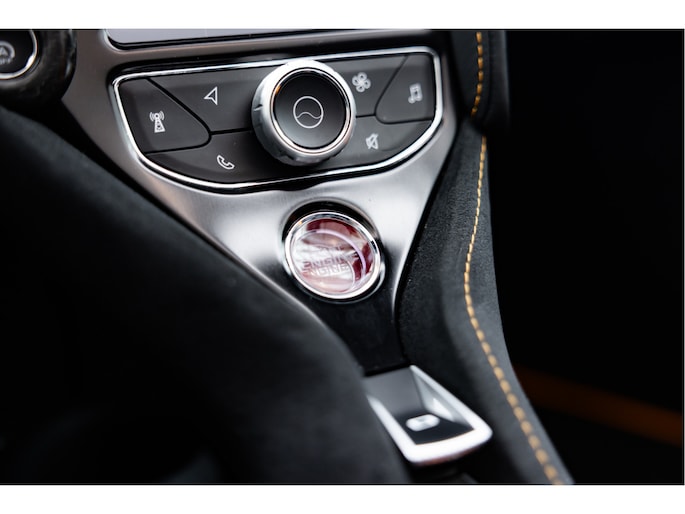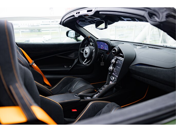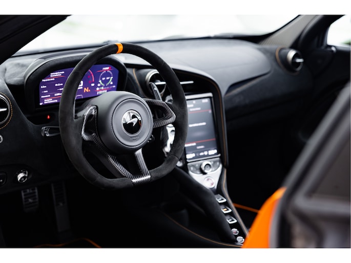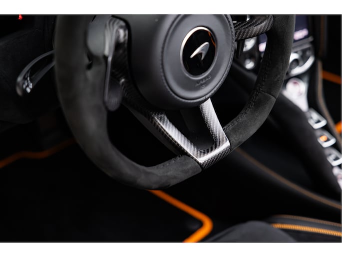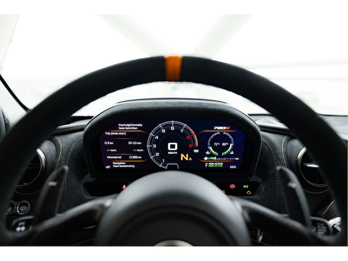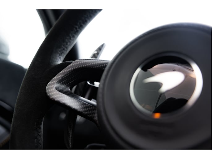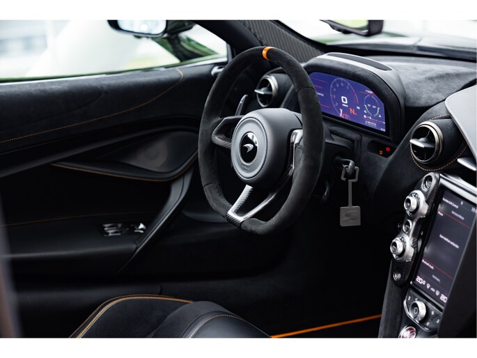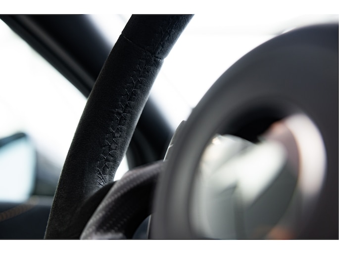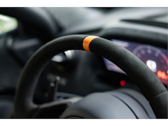 Het stuurwiel is voorzien van Alcantara bekleding met een McLaren Orange 12 O'Clock marker.