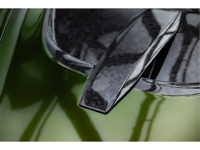 Dit pakket bevat de volgende onderdelen in forged carbon fibre: Frontbumper, bonnet, Sideskirts, Mirrorcaps, Rear Air Intakes, Active Aero Wing en Enginebay Cover.
