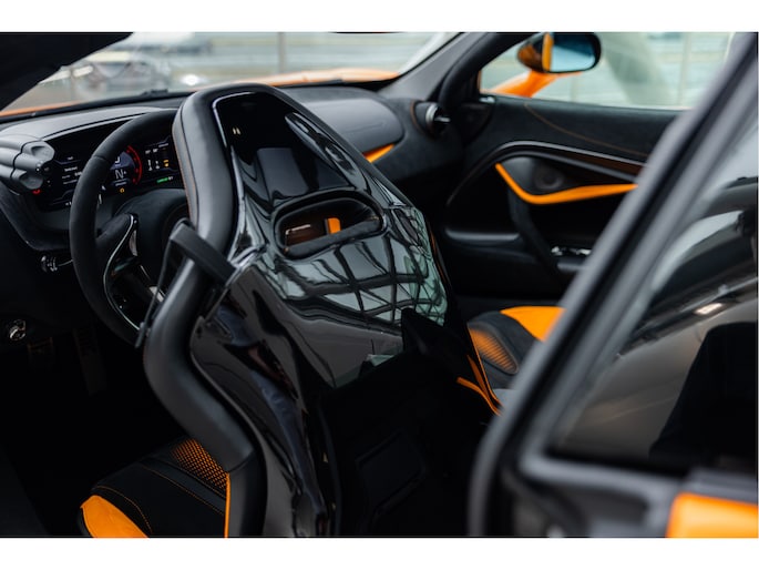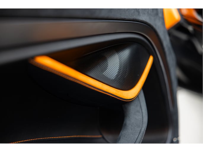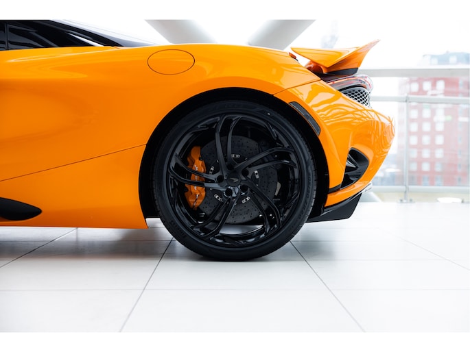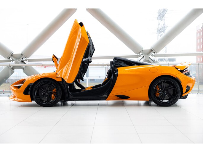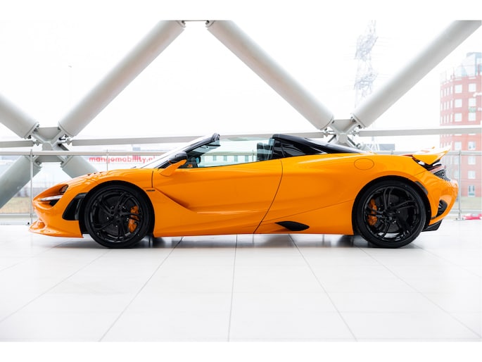 Deze nieuwe 750s Spider is nu nieuw bij ons op voorraad en voor de kleurstelling hebben we gekozen voor MSO Exterior Paint - Papaya Spark metallic, McLaren orange met een goudgele metallic flake erin met een Carbon Black Alcantara met McLaren Orange interieur. Het exterieur hebben we afgemaakt door te kiezen voor de nieuwe Vortex velgen met een Hoogglans zwarte afwerking met daarachter de McLaren Orange Remcalipers.
