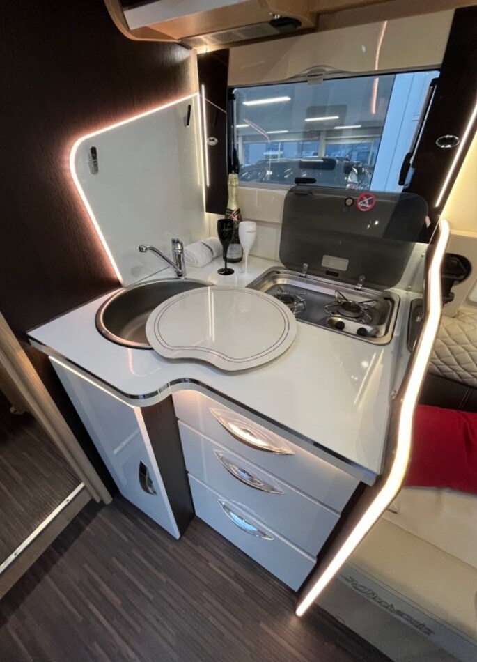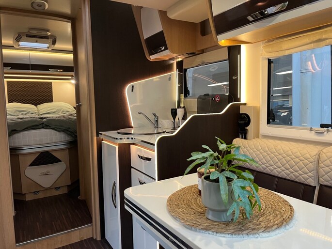 Betreft een hele fijne en efficiënt ingerichte camper met naast het Queensbed een elektrisch hefbed, een ruime keuken, een separate ruime badkamer en een separate frisse toiletruimte met alle gemakken van dien.