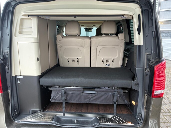 Een bijzonder stijlvolle en luxueuze Mercedes-Benz V 250d Marco Polo 4MATIC (4x4) uit 2017. Uitgevoerd in het elegante Indiumgrijs Metallic, gecombineerd met een verfijnd zijdebeige lederen interieur, straalt deze camper pure klasse en exclusiviteit uit. 5e extra stoel/zitplaats aanwezig