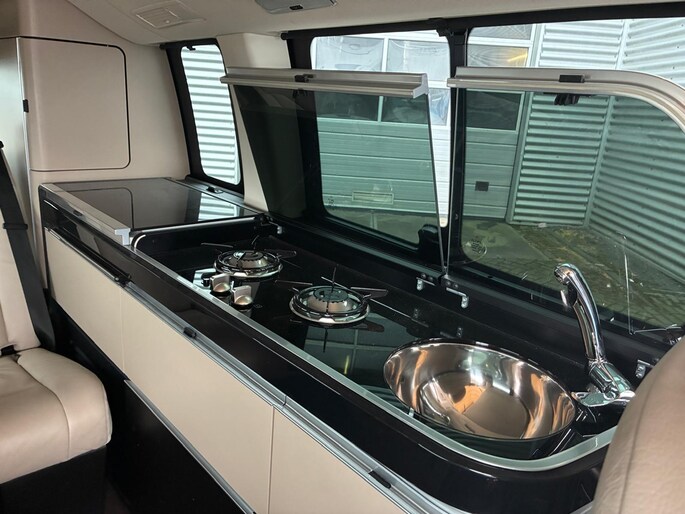 - Volledig ingerichte camperunit met 2-pits gastoestel en elektrische koelbox