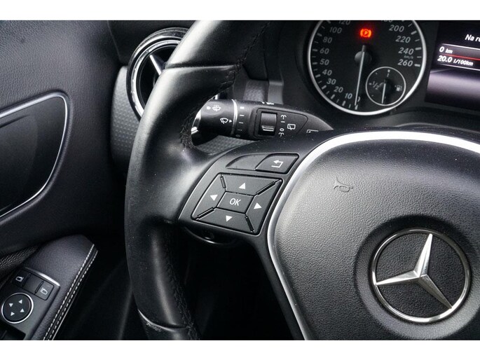 De high-end technologie van het high performance audiosysteem staat garant voor geluid van het hoogste niveau. Harder en zachter met een druk op de knop: de audiobediening op het stuurwiel maakt het mogelijk. Deze auto kent elke bestemming als z'n broekzak, dankzij het navigatiesysteem. Automatische airconditioning regelt volautomatisch de temperatuur. U kiest de gewenste temperatuur en het systeem doet de rest. Het drukke verkeer eist onderweg al uw aandacht op. Daarom is het goed dat deze Mercedes-Benz is voorzien van diverse systemen die u assisteren tijdens de rit. Een automatisch inschakelbare verlichting neemt het waar als het donker wordt of gaat schemeren, en schakelt dan automatisch de verlichting in. Op dezelfde manier "ziet" de regensensor de eerste spatjes regen en schakelt dan de ruitenwissers in, en als het harder gaat regenen zet hij de ruitenwissers ook in een snellere stand. Natuurlijk behoren lederen versnellingspook, lederen sportstuur en centrale deurvergrendeling met afstandsbediening ook tot de uitrusting van deze complete auto.