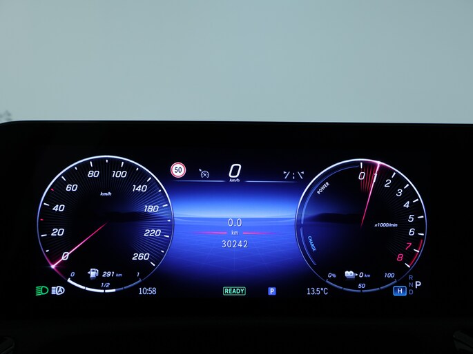In één oogopslag zijn alle vitale functies afleesbaar dankzij het digitale dashboard. Met de 360 graden camera kun je elk obstakel of gevaar rondom de auto detecteren, wat je veiligheid verhoogt. Wat is de onderhoudsstatus van deze auto? Je checkt het snel, simpel en overal via je smartphone. De bediening van het audiosysteem en het navigatiesysteem met harde schijf gebeurt met knoppen op het stuur en als je wilt zelfs met jouw stem. De audio is overigens voorzien van DAB-radio voor een altijd heldere ontvangst. Gedoe met kabels en stekkers in de sigarettenaansteker is voorbij. De aanwezige draadloze oplaadmogelijkheid voor telefoons zorgt voor wireless recharging van je smartphone. Je bent in deze Mercedes-Benz ook voorzien van electronic climate control, regensensor, cruise control, keyless Go, automatisch dimmende buitenspiegels en Burmester surround sound systeem.