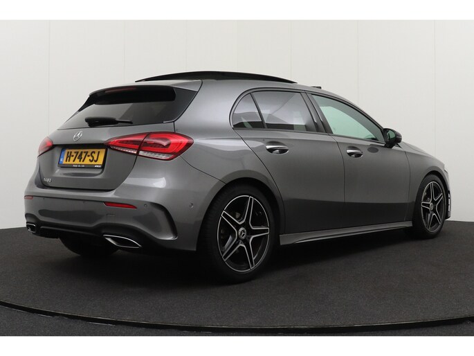 Het is niet alleen maar een stoer uiterlijk, deze Mercedes-Benz A-klasse biedt ook de sportieve rijkwaliteiten die u zoekt. Ook de uitstraling is lekker sportief: de AMG-styling geeft echt dat beetje extra. Hij heeft een benzinemotor en een automatische transmissie. Zit u goed? De stoelen zijn eenvoudig instelbaar dankzij de elektrische bediening met geheugen. Een heerlijk zonnetje, of indrukwekkende wolkenpartijen? Bekijk ze onbelemmerd door het elektrisch bediende glazen panoramadak. De matrix LED-verlichting in de koplampen bestaat uit een raster van lichtpunten met maximale opbrengst. Bij tegenliggers past het systeem precies die punten aan die hinderlijk kunnen zijn. U behoudt maximaal zicht! In deze auto profiteert u onder andere ook van: 18 inch lichtmetalen velgen, AMG-styling, warmtewerend glas, in delen neerklapbare achterbank en verstelbare lendensteunen.