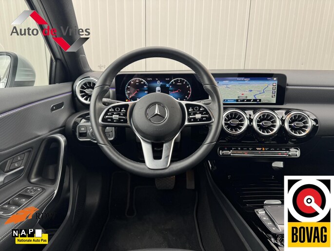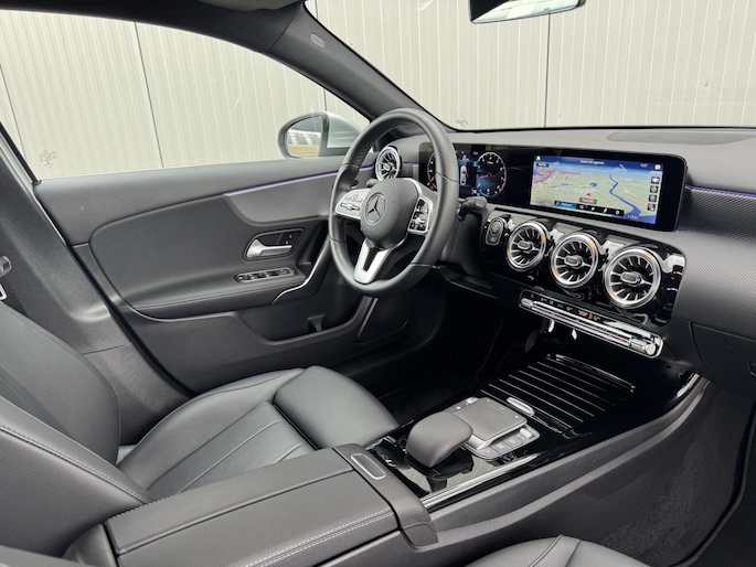 Qua luxe en comfort is deze A-Klasse bijzonder compleet. Het interieur is voorzien van kunstlederen bekleding, sfeerverlichting en verwarmbare voorstoelen. Het geavanceerde volledig digitale instrumentenpaneel en het uitgebreide navigatiesysteem zorgen dat u alle informatie overzichtelijk en stijlvol gepresenteerd krijgt. Uiteraard zijn ook Apple CarPlay/Android Auto aanwezig, zodat u uw smartphone eenvoudig kunt koppelen.