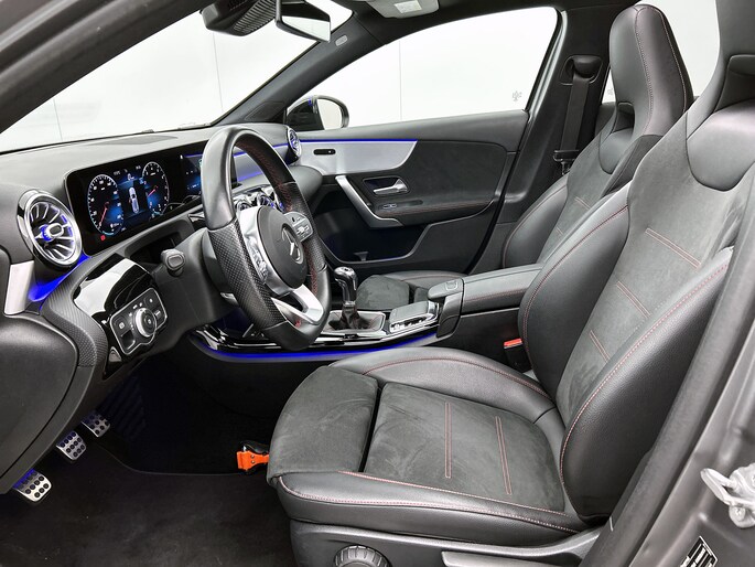 Auto's als deze Mercedes-Benz A-klasse bieden tegelijk rijdynamiek, comfort en degelijkheid. Het elegante exterieurdesign krijgt een sportieve impuls met het AMG-styling pakket. In deze auto vind je een viercilinder benzinemotor en een handgeschakelde zesversnellingsbak. Koude start? Niet met de verwarmbare voorstoelen! Ontspannen rijden begint met de juiste zit. Daar zorgen de zitcomfortpakket wel voor. Natuurlijk behoren 18 inch lichtmetalen velgen, high-performance LED-koplampen, AMG-styling, dynamisch onderstel, neerklapbare achterbank en direct sturingssysteem ook tot de uitrusting van deze complete auto.