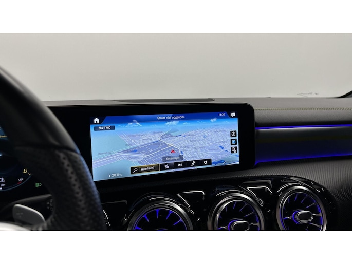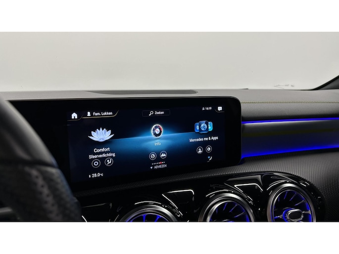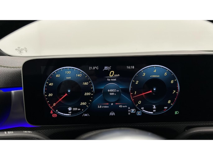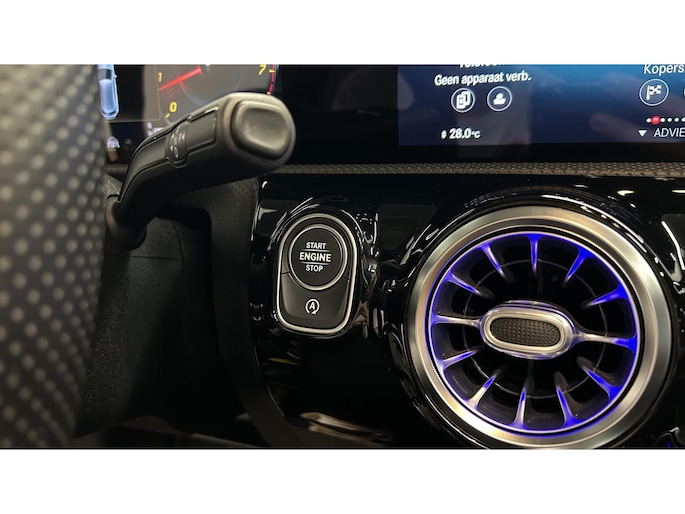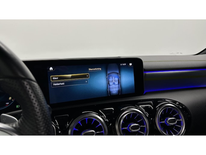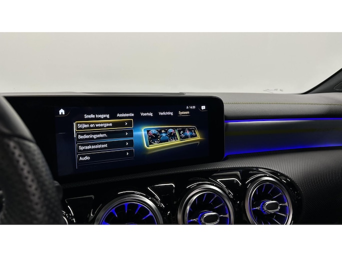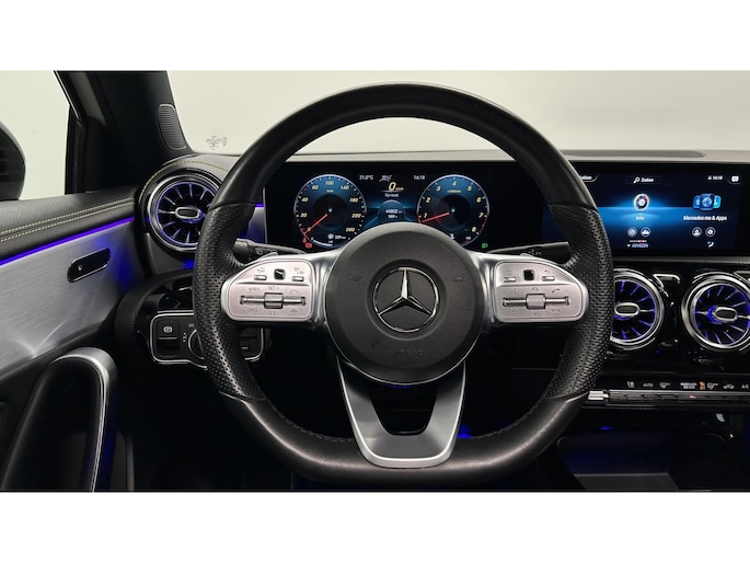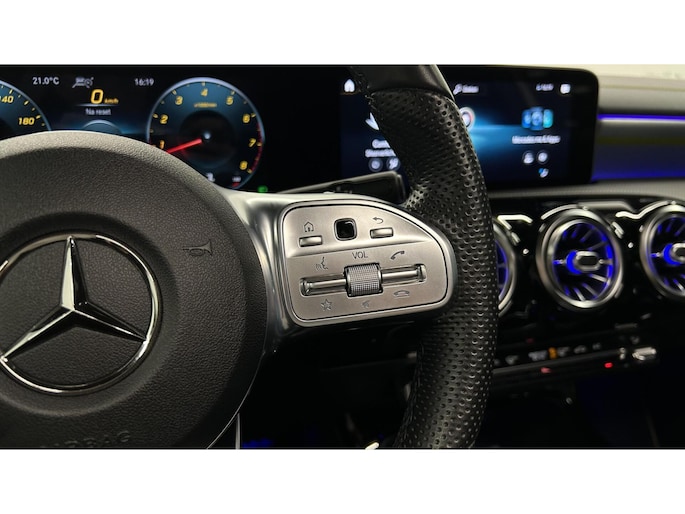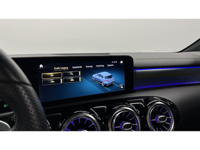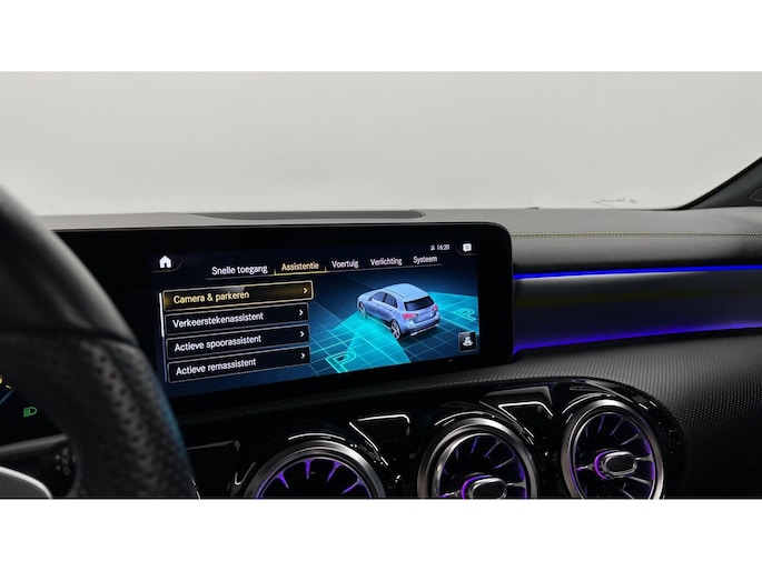 Zoals u mag verwachten van deze Mercedes A-klasse is hij uitgerust met een reeks aan actieve veiligheidssystemen. In het instrumentarium laat de verkeersborddetectie de actuele verkeersborden zien. Met het Lane-keeping systeem komt u nooit per ongeluk buiten de rijstrook. Het forward collision warning-systeem is constant alert en detecteert via sensor de afstand tot voorliggers. Wordt die te klein, dan volgt een automatische waarschuwing. In deze Mercedes vinden we verder een brake assist en bandenspanningcontrolesysteem.