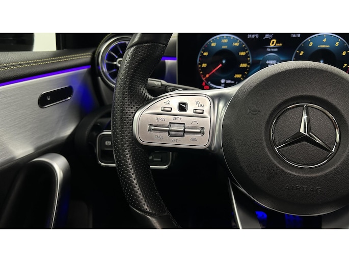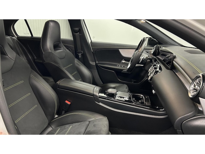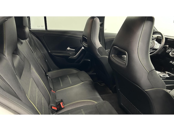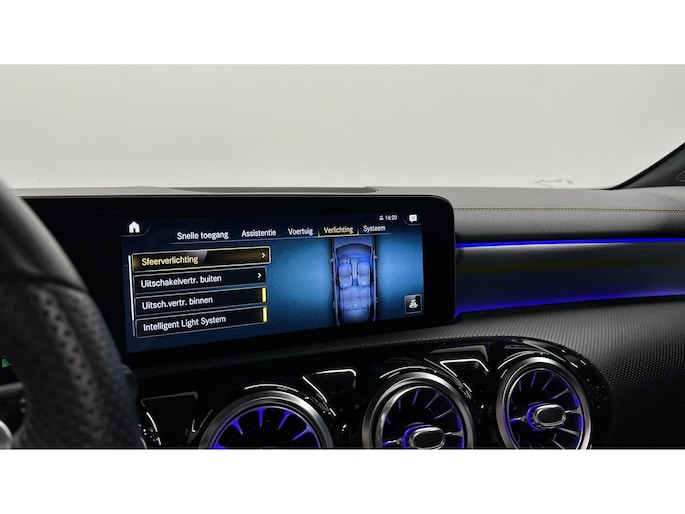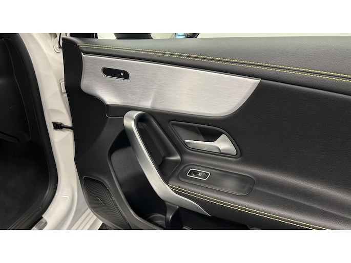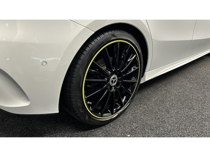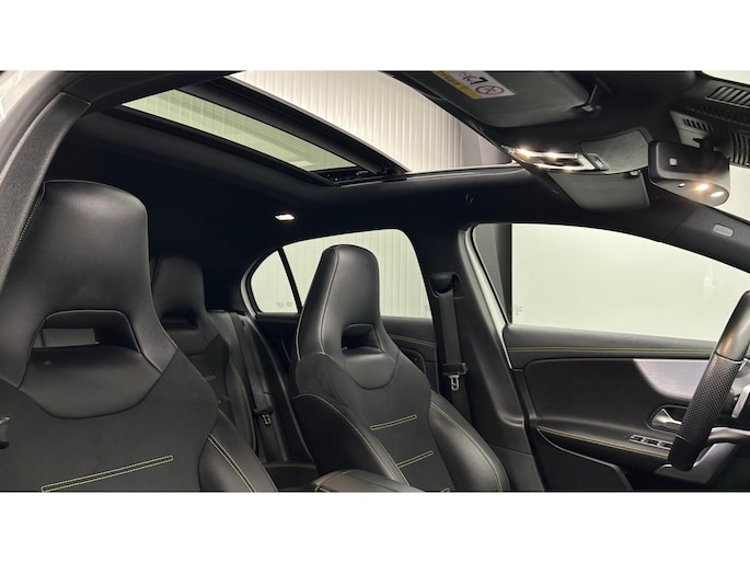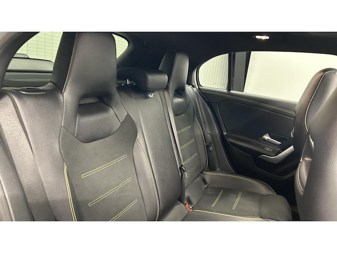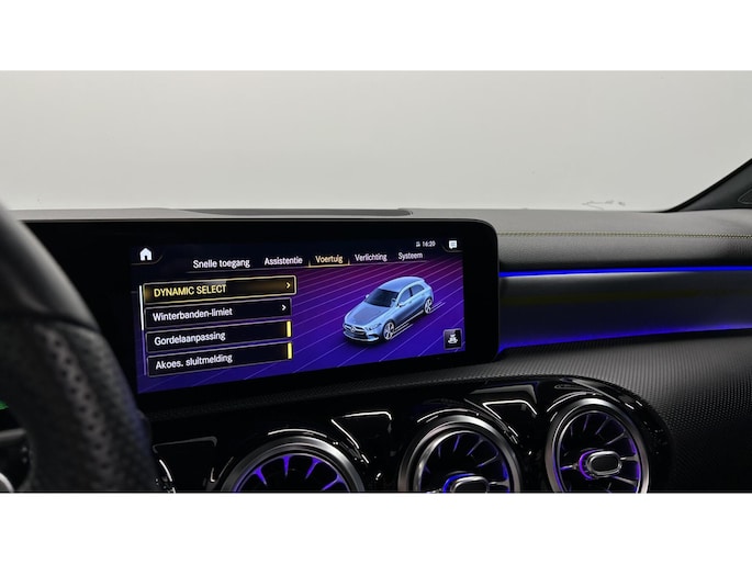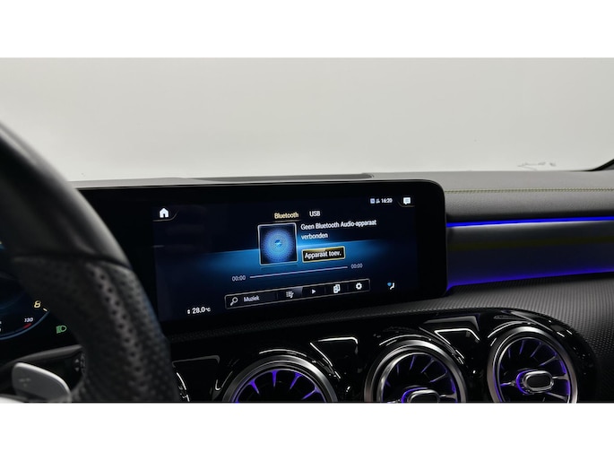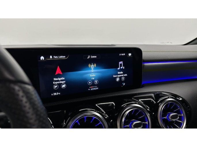 Zoals u mag verwachten van deze Mercedes A-klasse is hij uitgerust met een reeks aan actieve veiligheidssystemen. In het instrumentarium laat de verkeersborddetectie de actuele verkeersborden zien. Met het Lane-keeping systeem komt u nooit per ongeluk buiten de rijstrook. Het forward collision warning-systeem is constant alert en detecteert via sensor de afstand tot voorliggers. Wordt die te klein, dan volgt een automatische waarschuwing. In deze Mercedes vinden we verder een brake assist en bandenspanningcontrolesysteem.